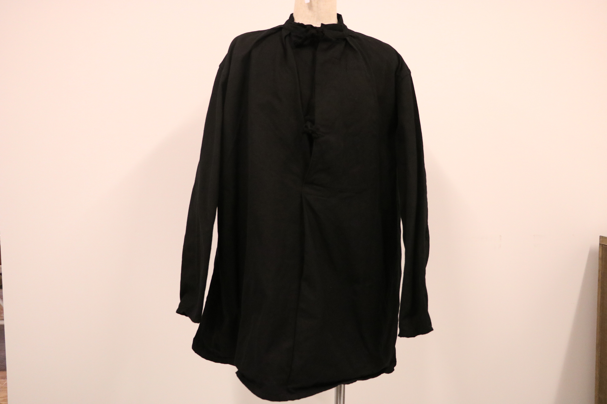 プルオーバーでグランパシャツの様な作りでフロントはボタンの代わりに紐が付いています。